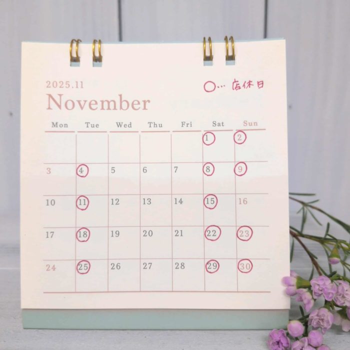 ◎定休日◎火曜(土日祝日は不定休)◎営業時間◎ショップ&サロン 9:30~17:00(サロンご予約受付:10:30~15:00)*11月から営業時間、サロンご予約受付時間が少しだけ長くなります。